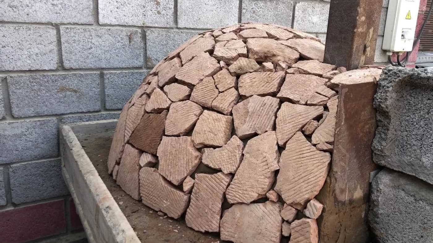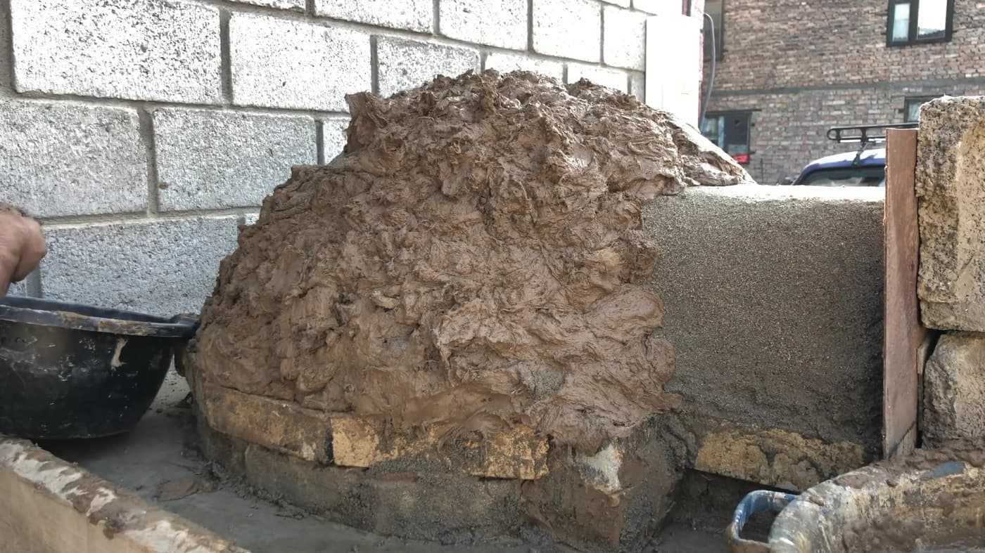 Подождём несколько дней или недель: глина должна высохнуть. Сверху покроем песчаным цементным раствором. Сделаем арку, дверцу-заслонку. Позже убираем песок внутри, зачистим внутри и сделаем красиво снаружи.