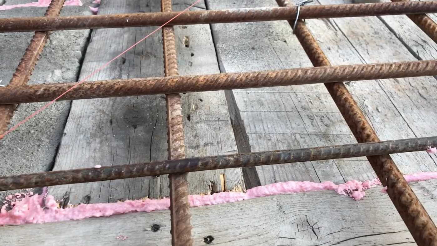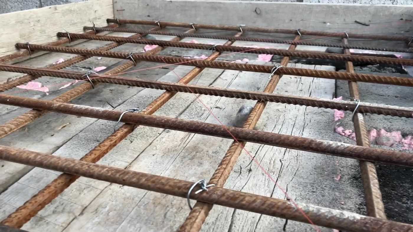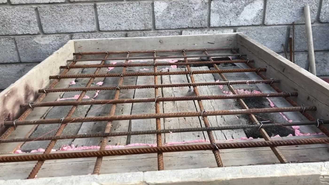 Обошьём внутреннюю часть. Установим опалубку под плиту, положим арматуру.