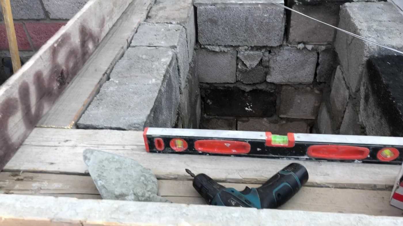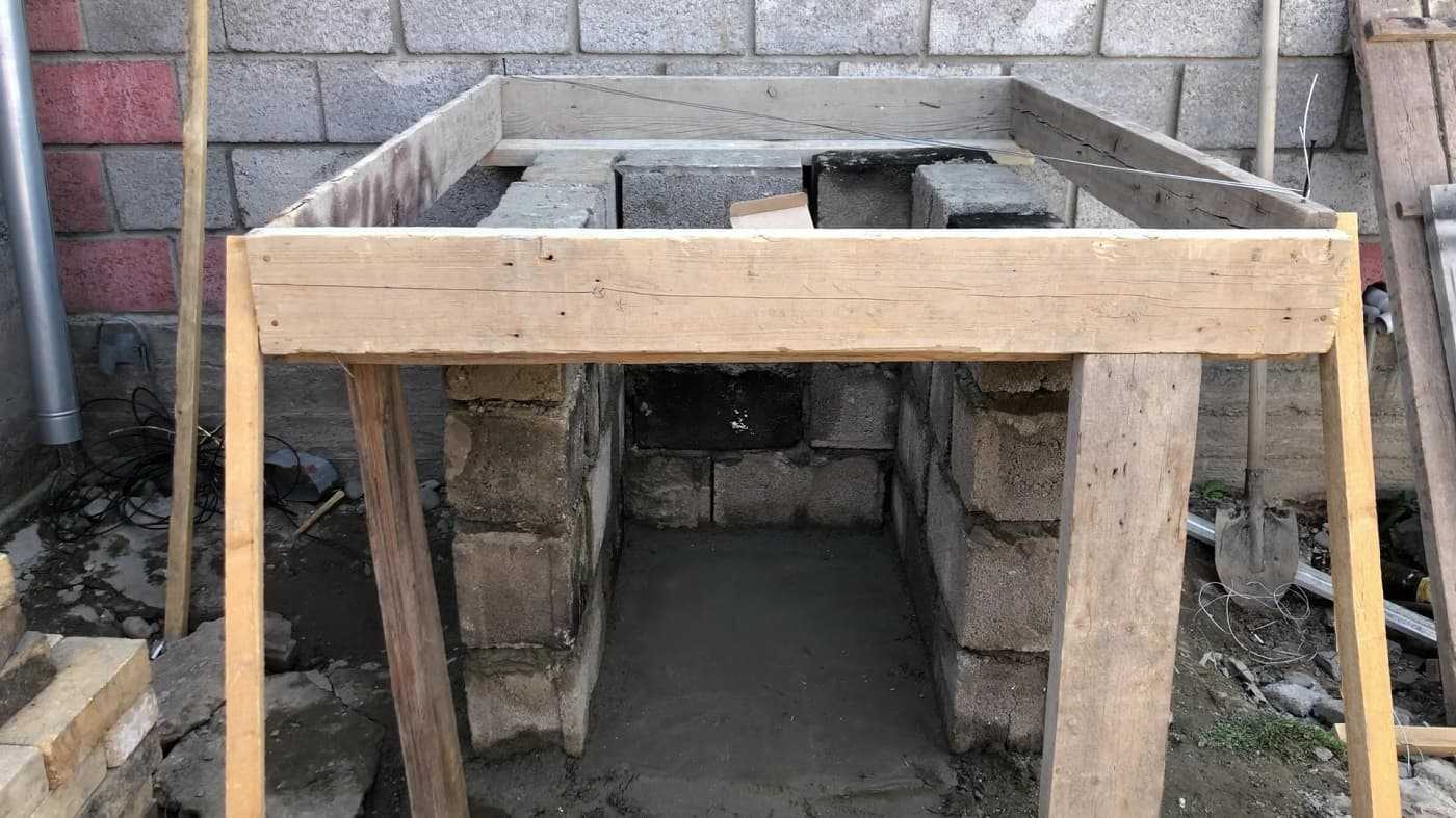 Основание сделаем из строительных отходов. Например, пескоблока. Сверху поставим опалубку.