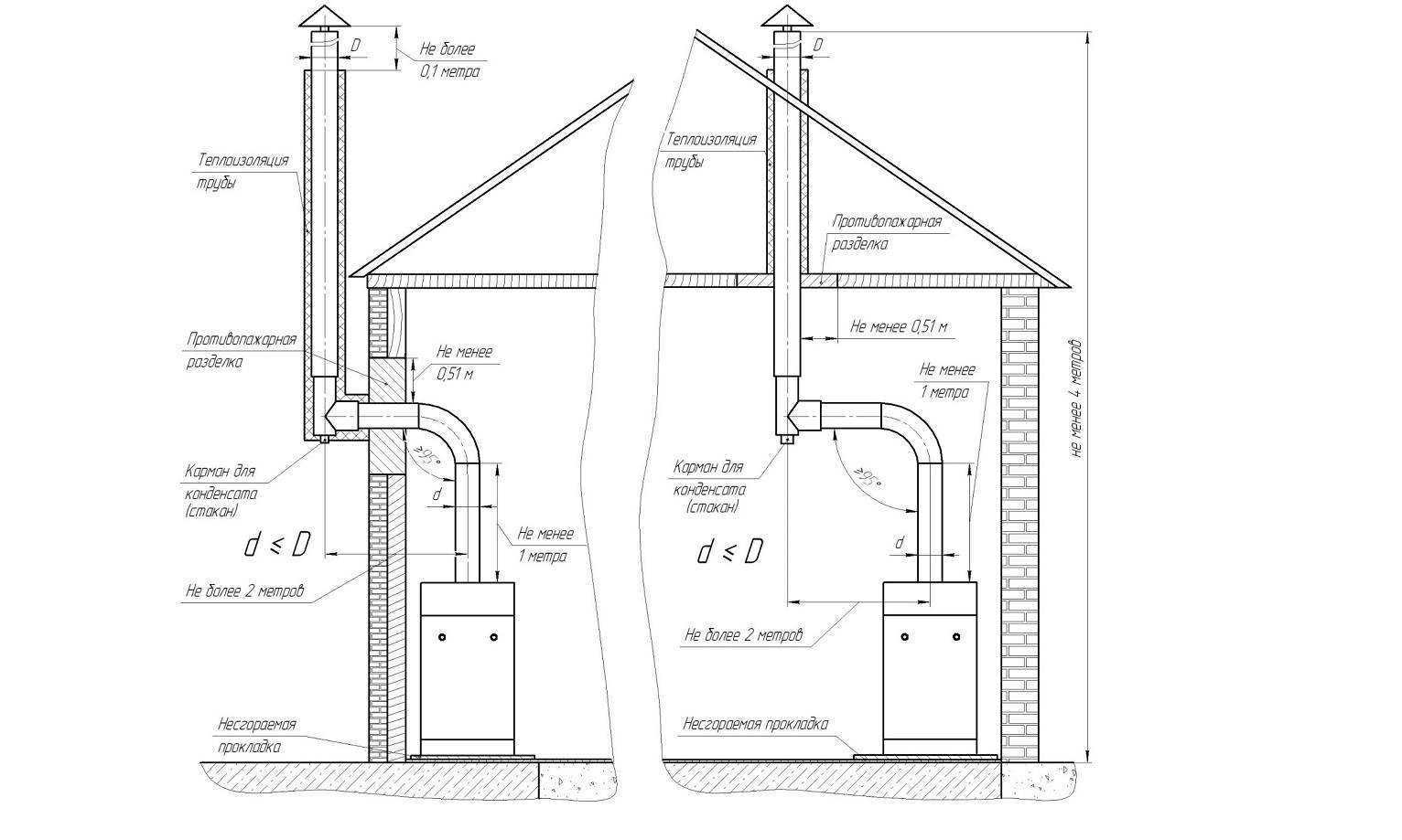 Устанавливать дымоход разрешается в соответствии с требованиями: