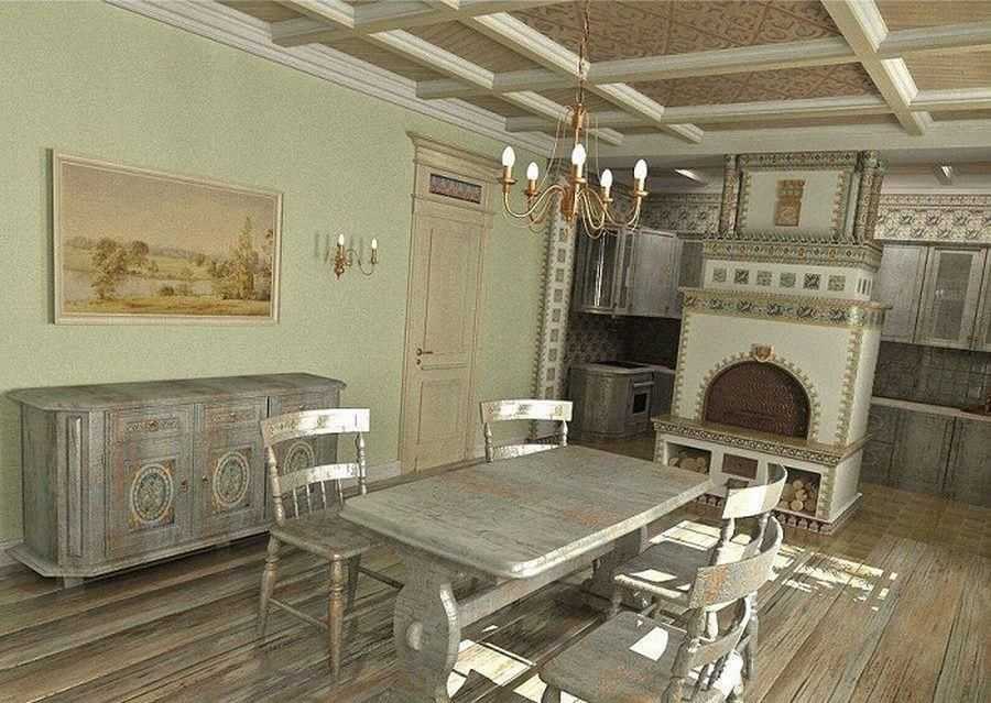 Примеров декорирования русской печи существует бесконечное количество, все зависит, только от Вашего воображения и желания приукрасить Вашу печь. В таком оформлении, она будет являться центральным предметом на Вашей кухне, подчеркивая Вашу уникальность и стиль оформления кухни.