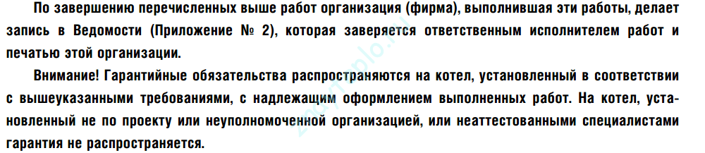 - Высокая вероятность отказа в гарантийном обслуживании оборудования. Для того, чтобы не быть голословным приведу выдержки из паспорта на электродный котел: