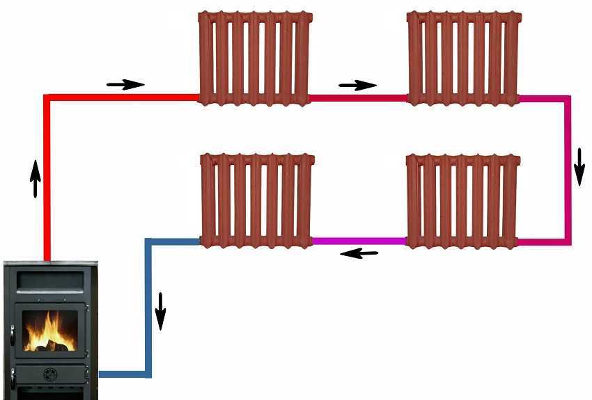 Такая схема подключения предполагает наличие в системе отопления давления, достаточного для движения теплоносителя по трубам.