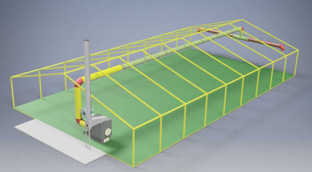 В системе воздушного отопления склада, как понятно из названия, в роли теплоносителя выступает воздух. Он может нагреваться в самом тепловентиляторе от электрического ТЭНа или воды, а в теплогенераторе − от газа или в результате сжигания твердого топлива.