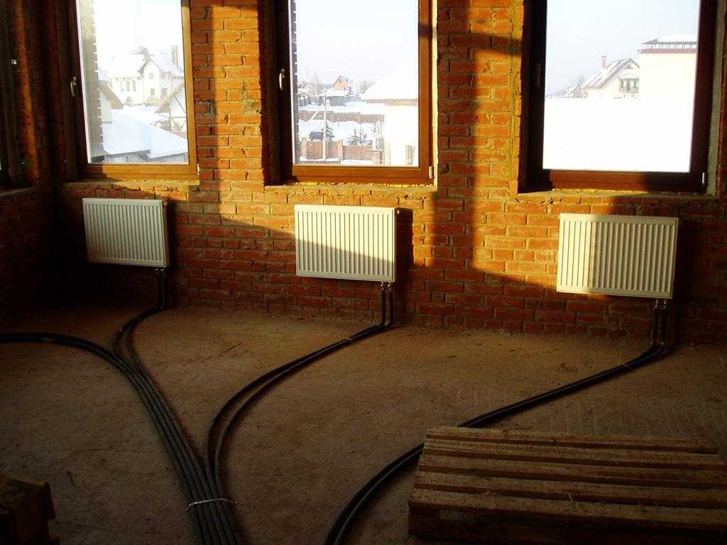 Некоторые отказываются от установки радиаторов и размещают по периметру дома трубу диаметром 8-10 см. Однако специалисты отмечают, что эффективность системы и удобство эксплуатации при таком решении снижается.