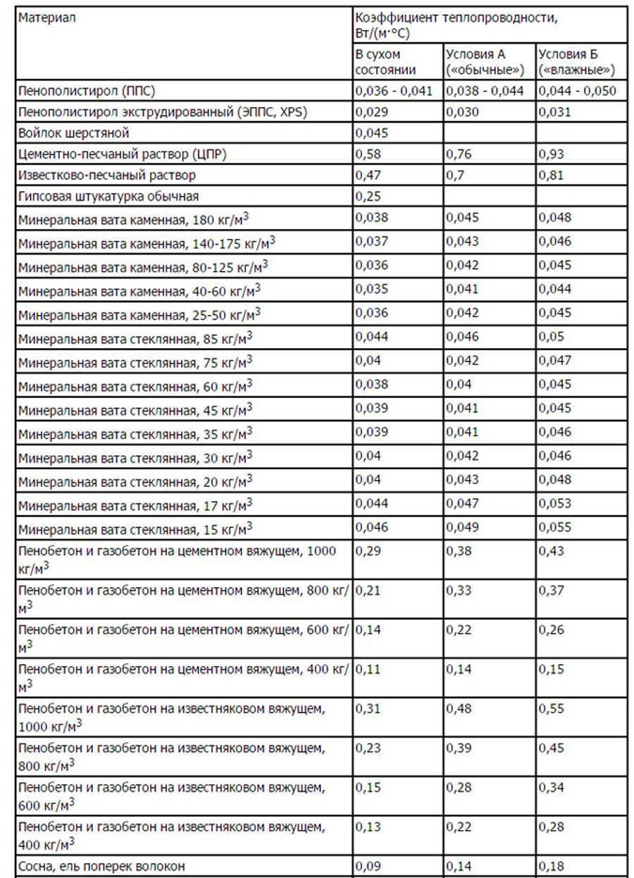 - коэффициент теплопроводности утеплителя — λА=0,040; λБ=0,042.