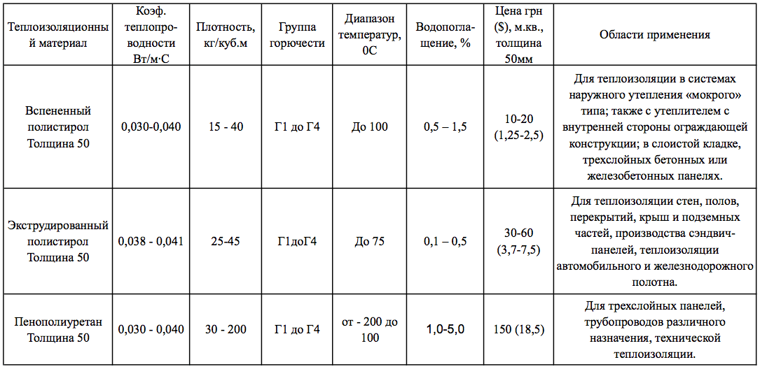 Исходя из их характеристик, а также особенности помещений, в которых они будут использоваться, необходимо выбирать материал для утепления.