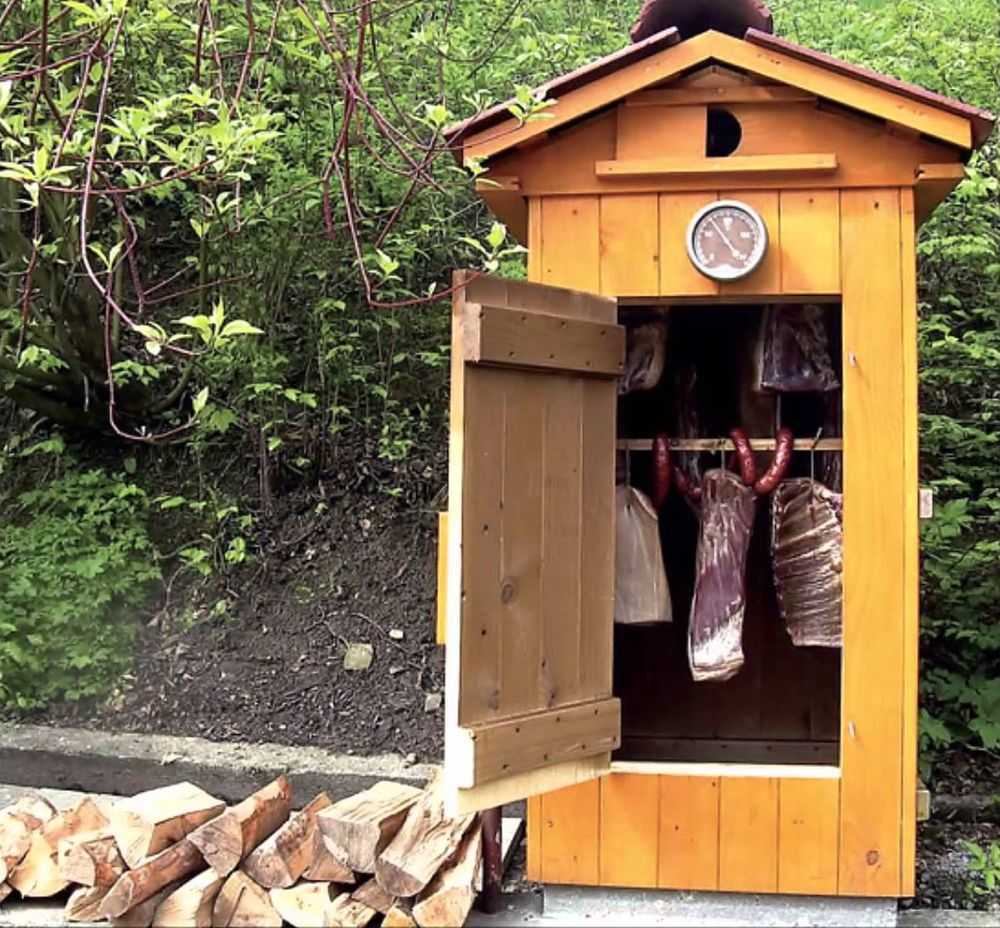 Беседка в данном случае подразумевается как небольшой домик, в котором складывается пища и постепенно коптится холодным дымом.