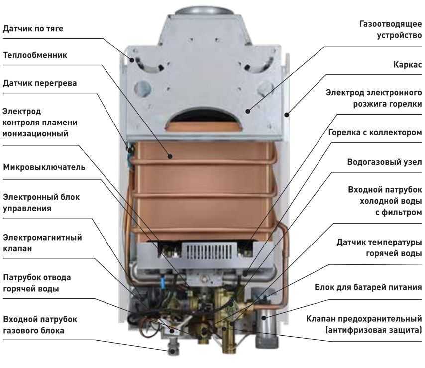 Схема газовой колонки с датчиками безопасности