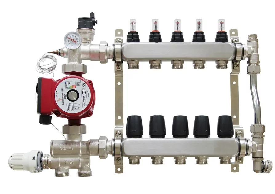 Коллектор — узел, осуществляющий распределение носителя и контроль за функционированием всей системы. Он помогает направлять носитель от входа в систему по контурам, настраивать температурный режим, отслеживать расход и возможные утечки теплоносителя.