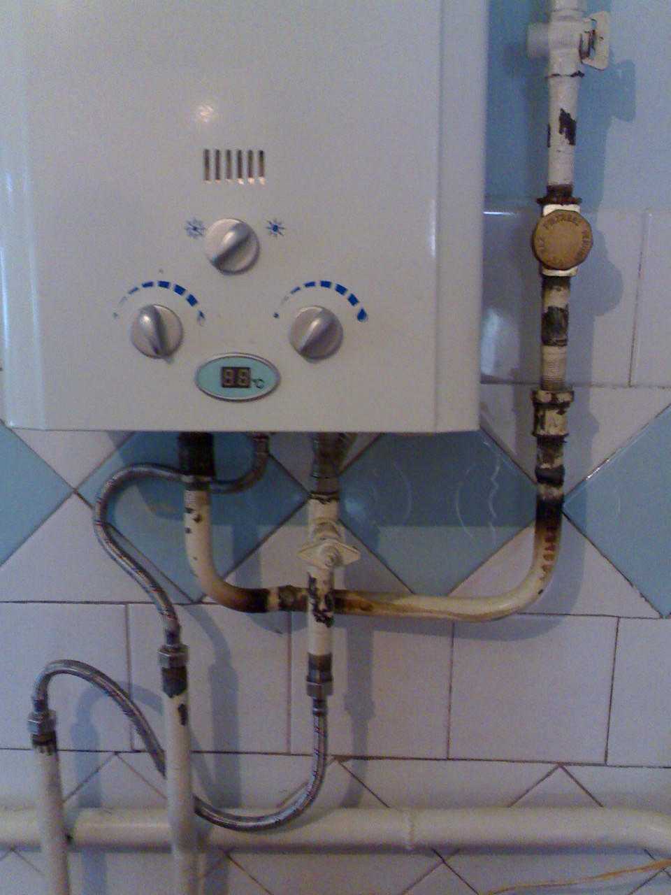 Если протекает вода непосредственно из колонки, это значит, что нарушена герметичность в трубах. Необходимо разобрать их и заменить уплотнительные элементы. В случае необходимости, придется заменить сами трубы.