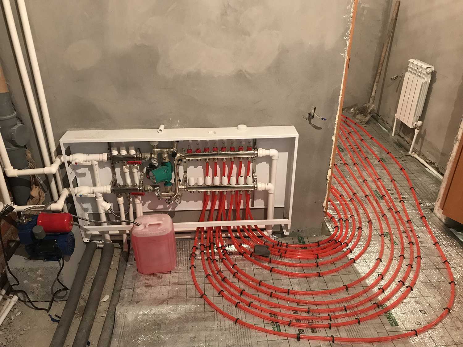 Как для любой схемы отопления основным элементом, от которого зависит эффективность, и надежность системы отопления является котел нагревающий воду или другой теплоноситель в системе. Другим элементом, который необходим для такой системы обогрева является коллектор для теплого водяного пола своими руками собранный, установленный и подключенный. Третий элемент для создания теплого пола — трубы для подключения и укладки контуров обогрева.