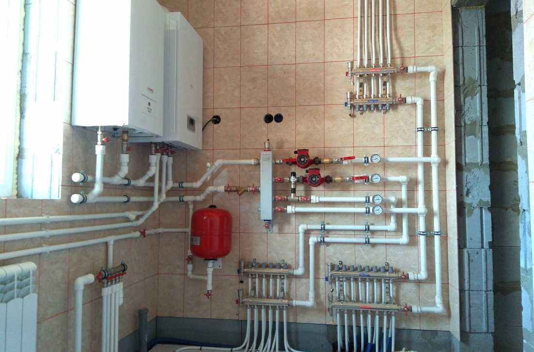 Соединения выполняются с помощью труб из полиэтилена, меди, металлопластика с необходимыми фитингами, соответствующие разъемам котла и смесителя. Газ подается через гофрированную трубу из нержавеющей стали. Далее проверяется визуально правильность подключения всех магистралей, осуществляется первый запуск и устраняются выявленные неисправности. Если система работает исправно, полы заливают цементной стяжкой.